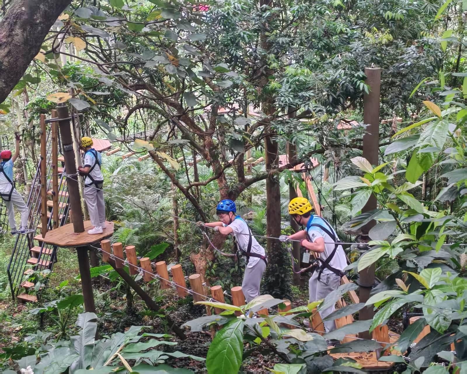 研学活动首站,香港学子抵达天人山水大地艺术园,正式开启这场融合自然生态与人文内涵的研学之旅。置身山水相依、诗意盎然的田园画卷中,两地学子共同参与团队破冰互动,结伴溯溪前行、携手协作闯关,在山野间的趣味互动中快速打破陌生感、拉近彼此距离。